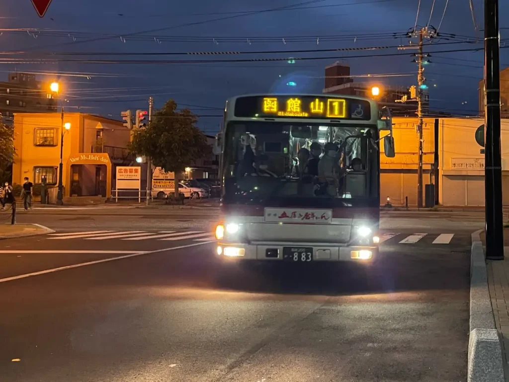 バスを利用する場合、山麓と山頂を結ぶ区間にて、車窓からは函館市街地の夜景を見ることができます。