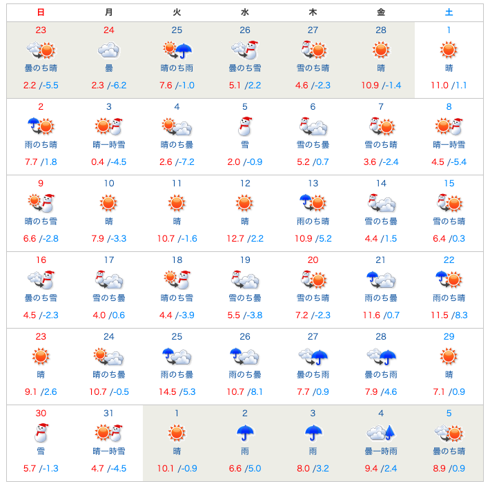 - 気温や雪の状況